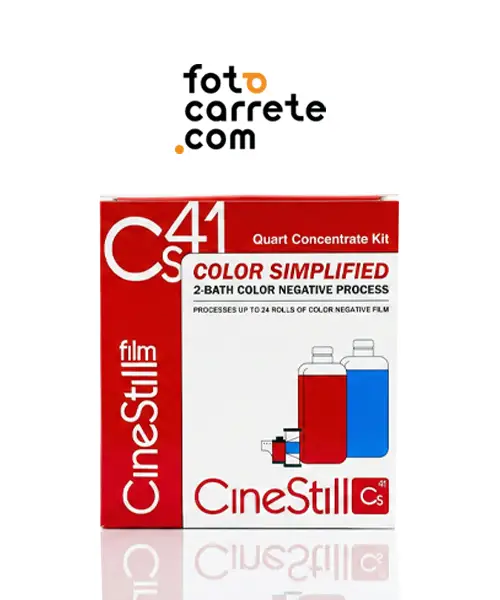 Pierde el miedo al proceso C-41. Atrévete a comprar el Kit Cinestill Cs41 (1 Litro) y domina la magia del color en tu propio cuarto de baño. Confía en el stock siempre seco de FotoCarrete. Mezcla con paciencia, clava la temperatura, eructa el gas del Blix y maravíllate con negativos perfectos listos para tu escáner.